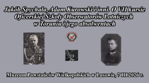 W najbliższą sobotę, tj. 7 marca 2026 roku, zapraszam Państwa do Muzeum Powstańców Wielkopolskich w Lusowie na promocję książki „Więcej niż piąta broń. Koncepcja użycia oraz funkcjonowanie polskiego lotnictwa wojskowego i cywilnego w latach 1921-1925”. Podczas spotkania zostanie wygłoszony wykład pod tytułem „Jakób Spychała, Adam Kurowski i inni. O VII kursie Oficerskiej Szkoły Obserwatorów Lotniczych … Dowiedz się więcej